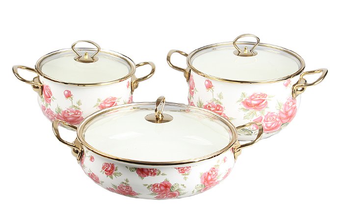 Sada smaltovaných hrncov.