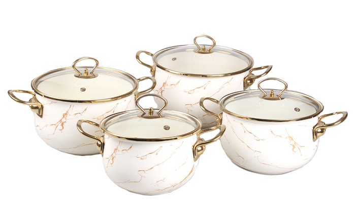 8-dielna sada smaltovaných hrncov zlatý mramor