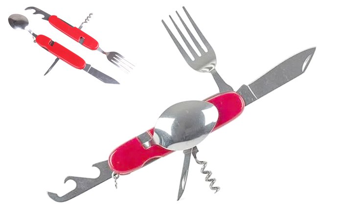• Funkcia: vidlička, lyžica, nôž a otvárač