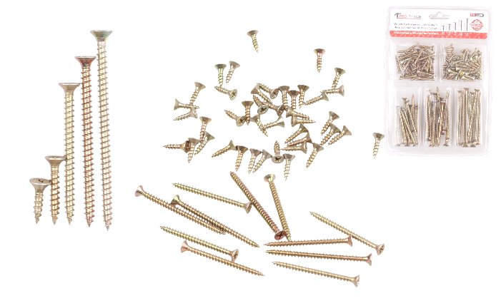 Súprava univerzálnych skrutiek do dreva.