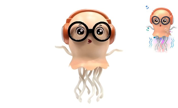 • Tancuje a pohybuje chápadlami o 360 stupňov a zároveň hrá hudbu