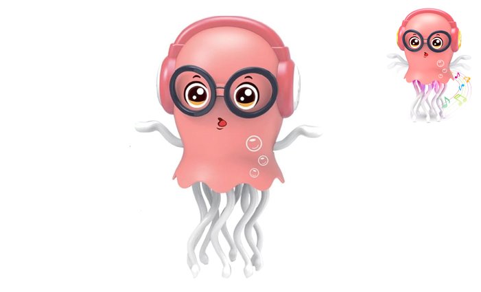• Tancuje a pohybuje chápadlami o 360 stupňov a zároveň hrá hudbu